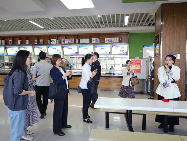到达郑州新奇中学后,在讲解老师的带领下,学员们开始了校园参观。他们走进教学楼、餐厅、宿舍,以及图书室、美育厅等功能教室,在校园文化墙和活动展板前驻足观看、拍照记录。在新·奇农科院儿,了解到新奇校园内的这20亩土地,从荒地到师生齐开垦、播种,再到如今的师生承包责任田,四季都有花果香,学员们纷纷点赞。新奇学子阳光向上的精神面貌,老师专业敬业的工作状态和整洁优雅的校园环境得到了大家的一致肯定。