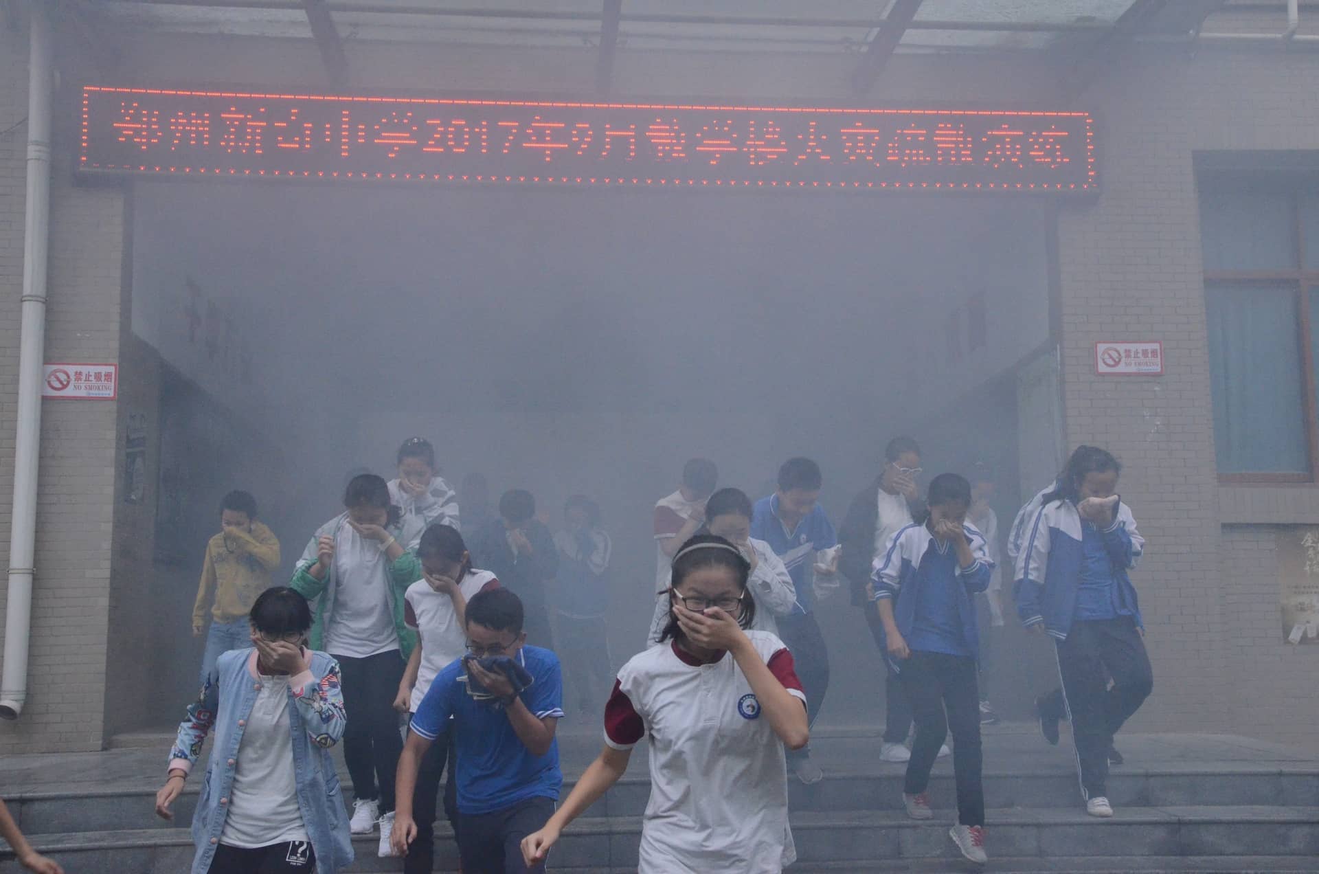 9月25日上午10点零5分,随着刺耳的警报声响起,烟雾弹开始在空中弥漫,模拟火灾逃生演练正式开始。走廊里、楼梯间立即响起急促的脚步声,我校24个班的学生们猫着腰,用湿毛巾捂着鼻子和嘴部,按照事先安排好的疏散路线有序撤离。“捂住口鼻,低下头,不要嬉戏打闹,小心脚下,不要撞到别的同学!”疏散岗位的教师们不停地向学生们呼喊口号,以防发生意外情况。