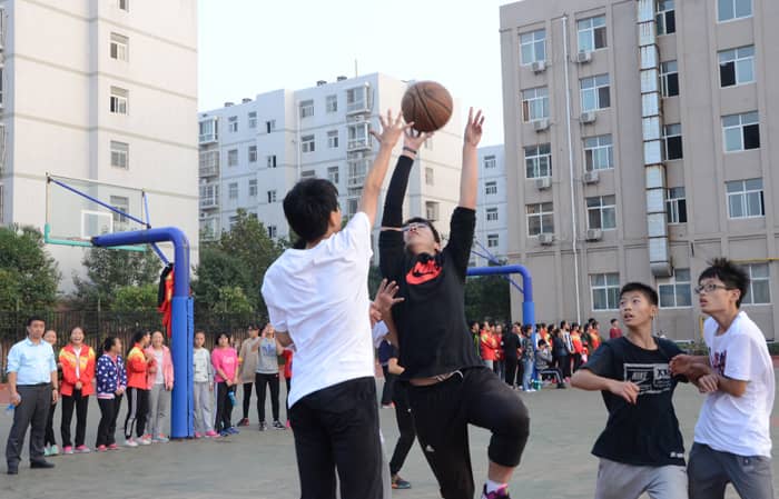 我校举办八、九年级三人男子篮球比赛